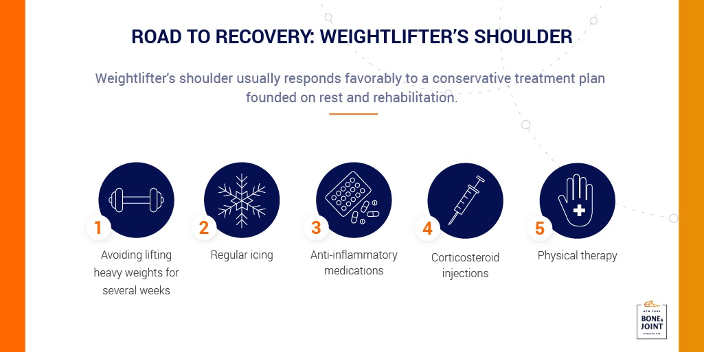 DC osteolysis usually responds favorably to more conservative treatments. Indeed, most cases can be effectively treated with some combination of rest, regular icing, anti-inflammatory medications, corticosteroid injections, and physical therapy. A typical rehabilitation plan should completely eliminate pain in six to eight weeks.