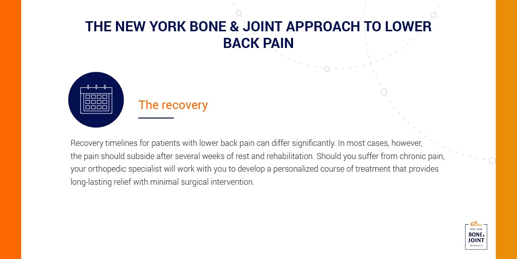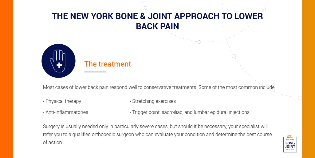 If you’re searching for a doctor who can address your lower back pain, the talented team of specialists at New York Bone and Joint is here to help you. With decades of combined experience in treating lower back pain, we’re committed to developing a personalized treatment plan that provides long-lasting relief with minimal surgical intervention.